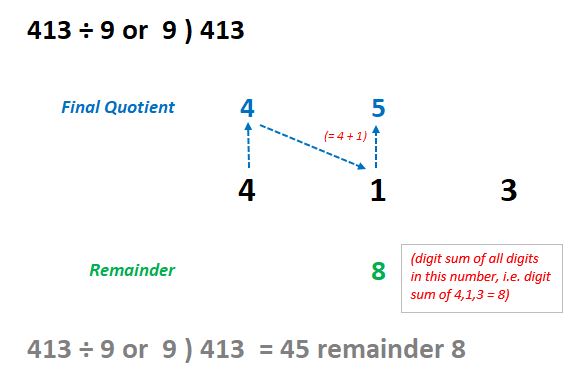 And there must be something unique when we divide any number by 9. We are going to learn a method with which we can easily and quickly find the quotient and remainder in one line.